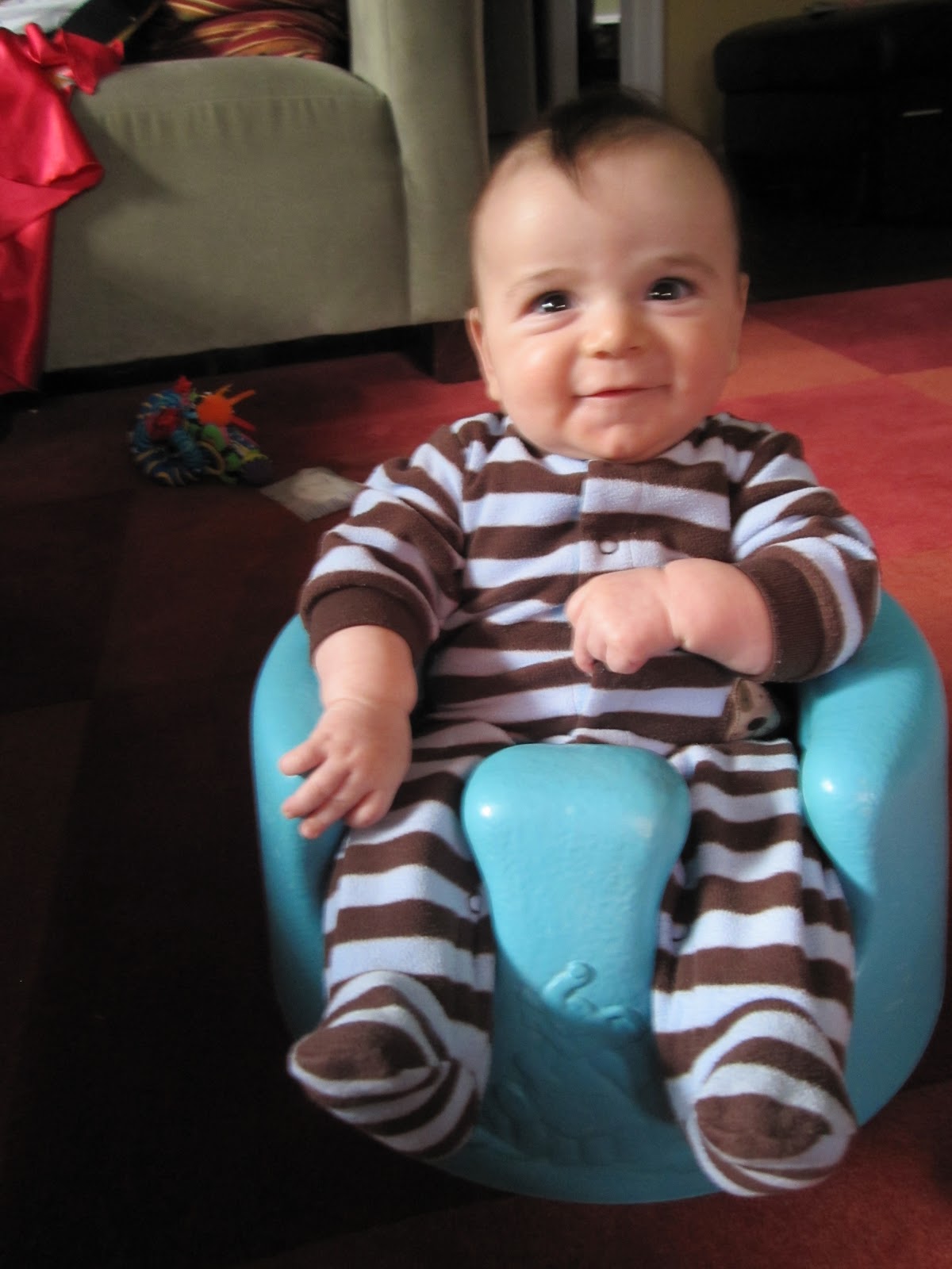 What a big boy Ezra is becoming. Today he tried out successfully both "tri-pod" sitting and the bumbo chair. Too cute!