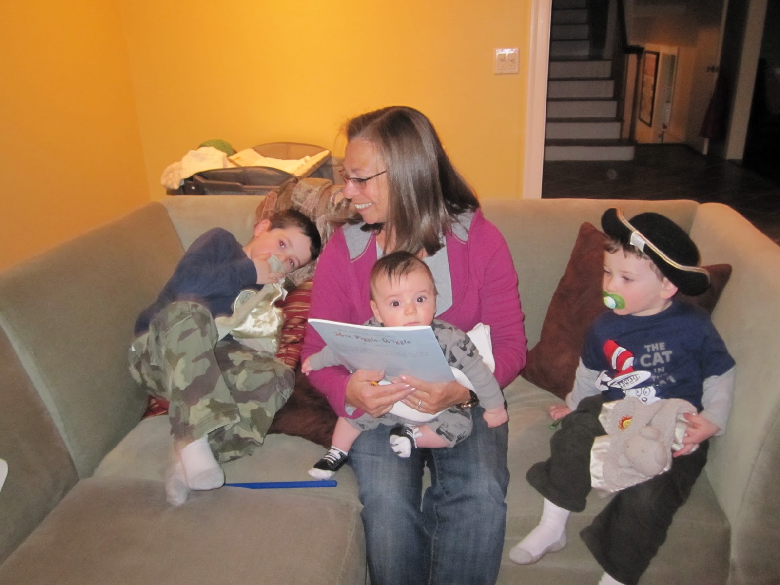Uncle Jono reading to Seth, Justin and Becca.